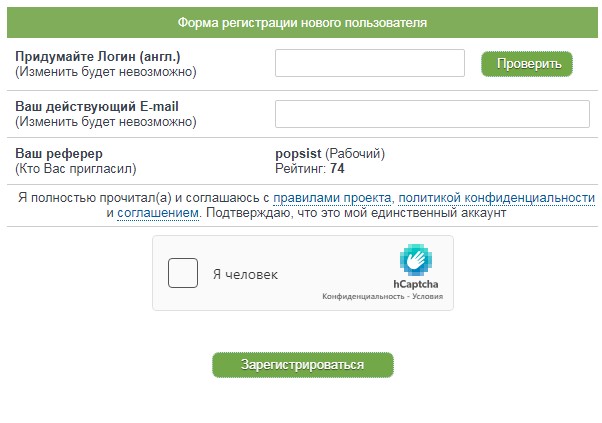 Сайт простой, и каждый на нём сможет заработать. Регистрация на сайте вполне простая: