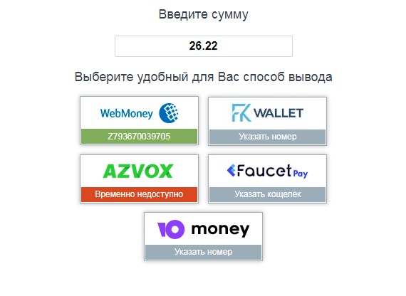 Заказывать выпалу вы сможете на вебмани, fkwallet, azvox, faucetpay, и юmoney. Прямо сейчас закажем выплату на вебмани: