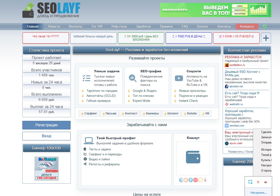 Сайтов для заработка в интернете не мало, но сегодня будем зарабатывать на сайте - seolayf, и выводить денежку с сайта на webmoney.