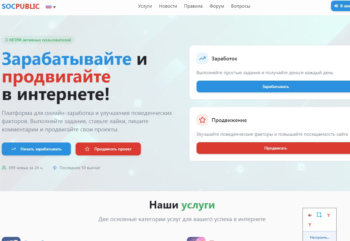 Здравствуйте друзья, сегодня хотелось бы показать топовой способ заработка 2026 года на вебмани. Будем зарабатывать на сайте - socpublic.