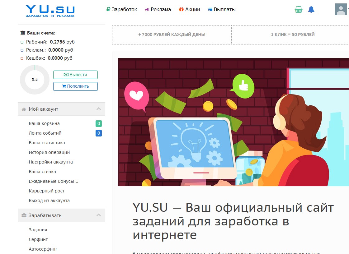 Сайт простой, и зарабатывать на нём сможет каждый желающий.