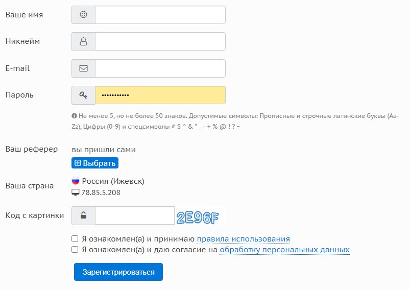 Для регистрации вводите имя, ник, почту, пароль, и нажимаете зарегистрироваться.