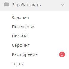 Есть раздел <зарабатывать> где вы сможете выбрать раздел для заработка: задания, посещения, письма, сёрфинг, расширение, тесты, посещения.