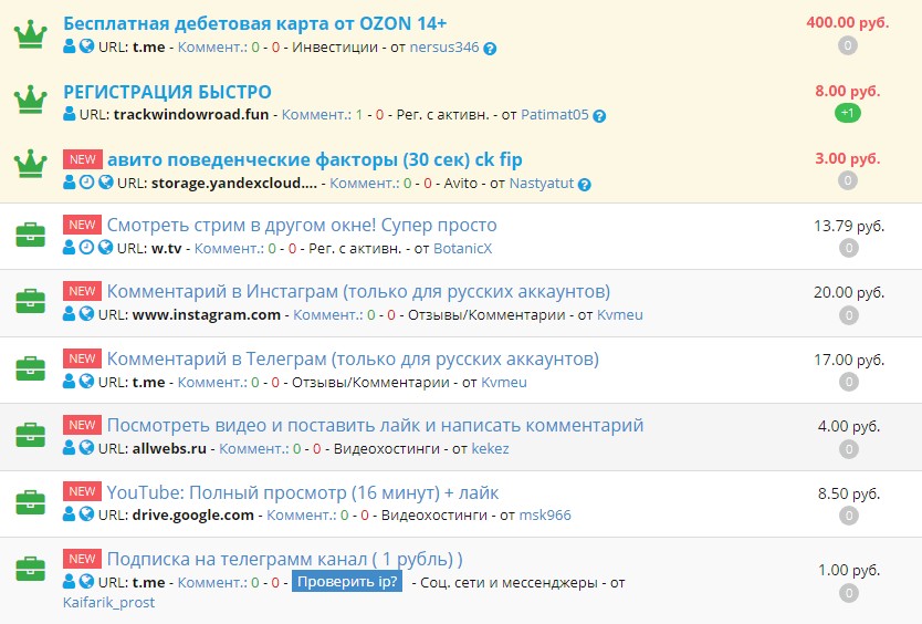 Самый прибыль заработок на сайте - эта выполнять задания, как видите есть задания даже от 400 рублей, но их выполнять не проста. Советую выполнять задания от 1 рубля до 10 рублей. В среднем на сайте можно заработать от 100-200 рублей за 1 день, сумма не большая но за месяц можно заработать от 3000-4000 рублей на мелкие расходы.