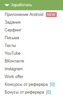 В категории <заработать> вы сможете выбрать категорию для заработка к примеру задания: