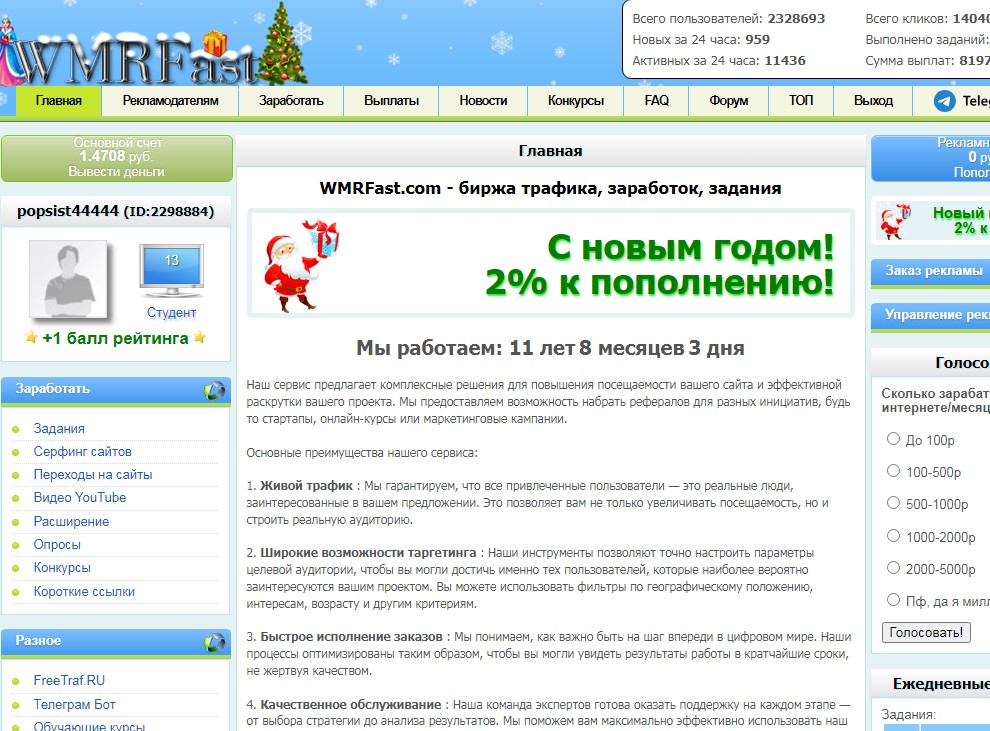 Привет друзья, сегодня вы сможете начать зарабатывать реальные деньги без вложения, и опыта на сайте - wmrfast. Сайт предлагает каждому пользователю зарабатывать на разных действиях - заданиях, письмах, сёрфинге, переходам по сайтам, расширение, и прочее другое.