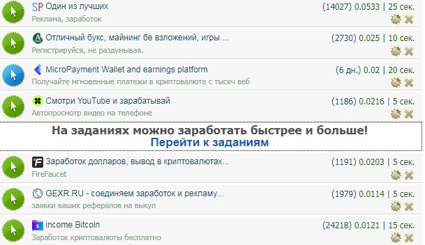 Зарабатывать вы сможете на заданиях, сёрфинге сайтов, переходам по сайтам, видео на ютубе, расширение, опросы, участвовать в конкурсах, и короткие ссылки.
