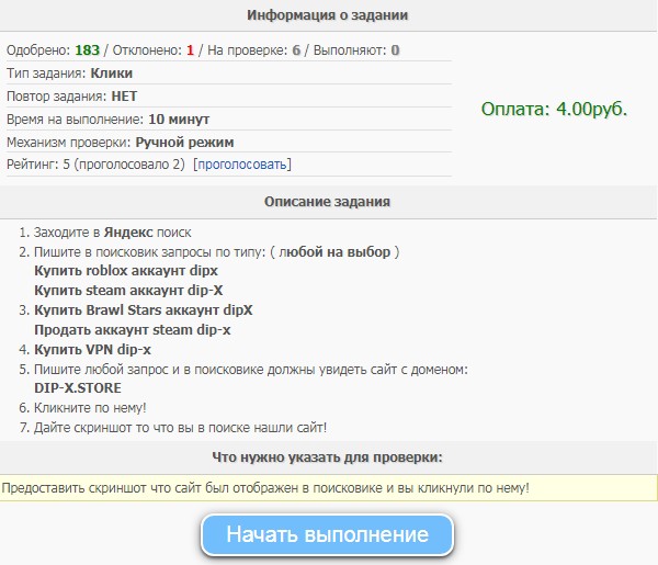 К примеру за такое задания платит 4 рубля. Чтобы выполнить задания вам понадобиться ввести запрос в яндексе, перейти на сайт, и сделать скриншот, и задания можно отправлять на проверку, чтобы рекламодатель оплатит вам за вашу работу.