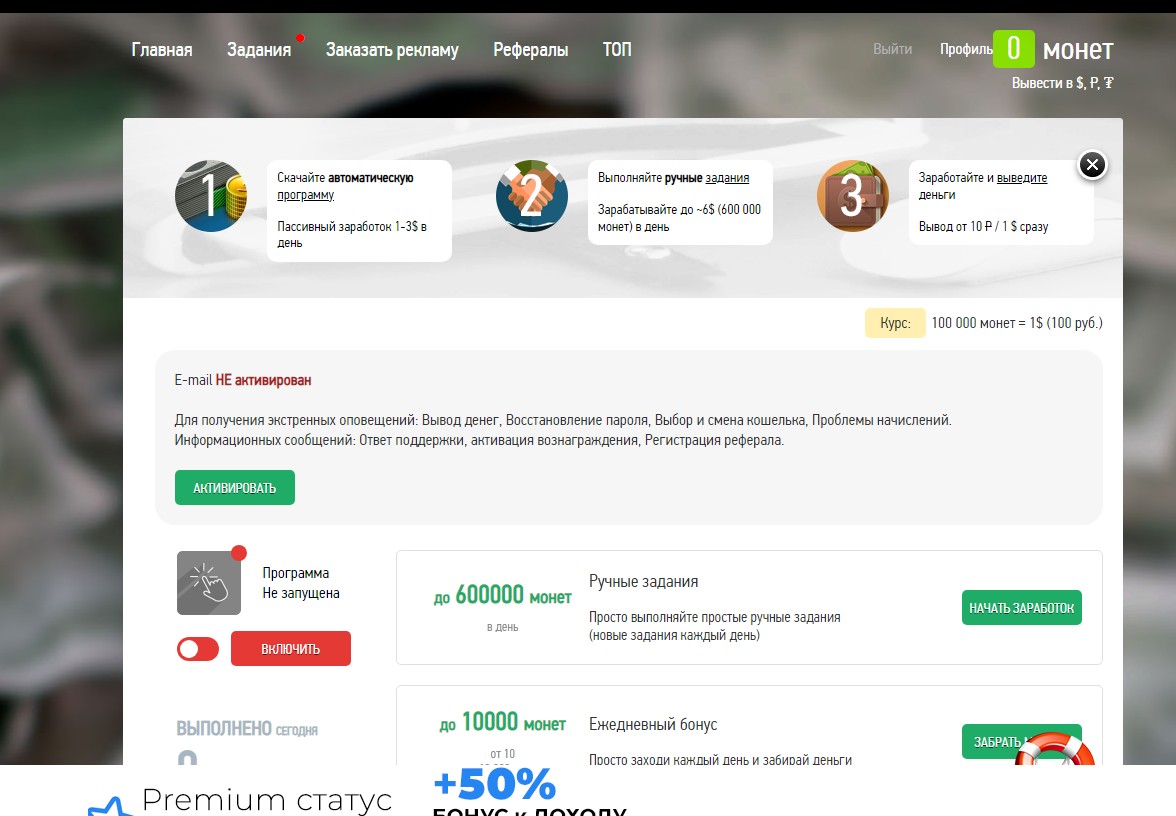 На сайте вы сможете скачать программу, установить её и вы будете получать доход автоматически.