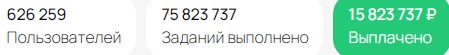 Пользователей на сайте более 600 000 человек, а выплачено более 15 000 000 рублей.