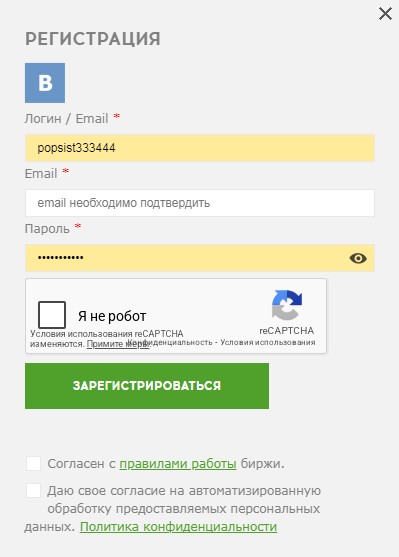 На сайте простая быстрая регистрация, вводите логин, электронную почту, и пароль.