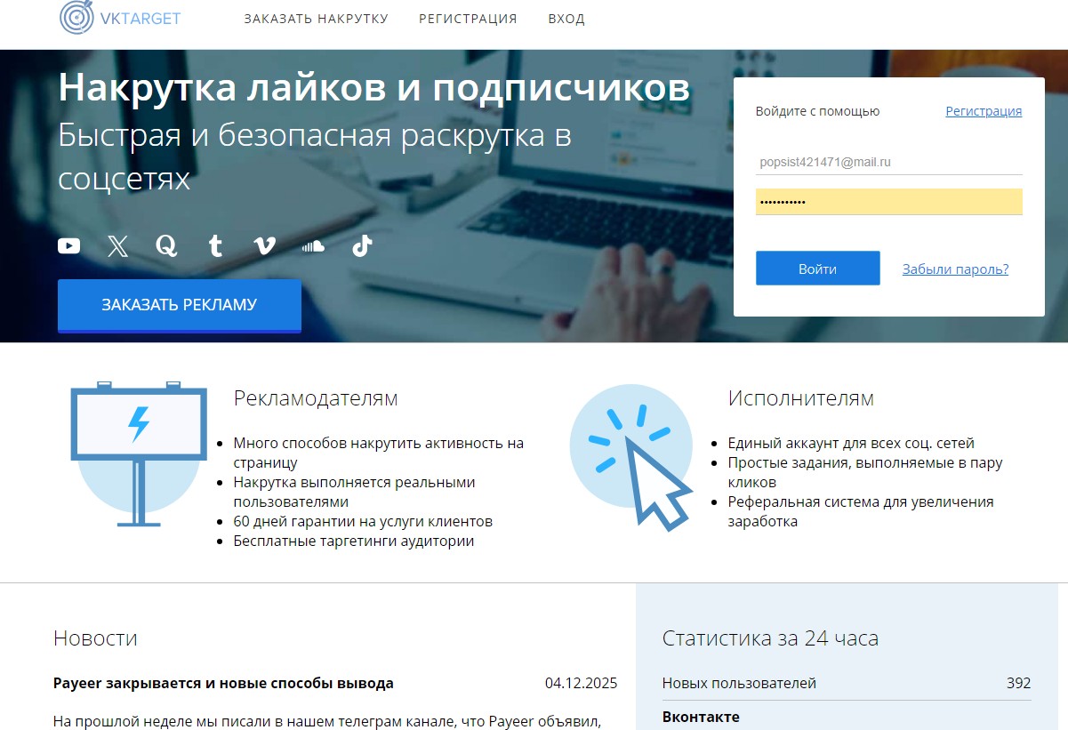 Всем привет друзья, сегодня у нас для вас сайт vktarget на котором можно зарабатывать на своём аккаунте вк, и не только.