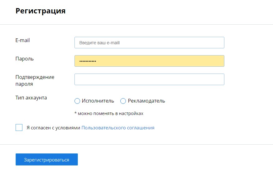 Вводите электронную почту для регистрации, далее пароль, тип аккаунта, и завершаете регистрацию.